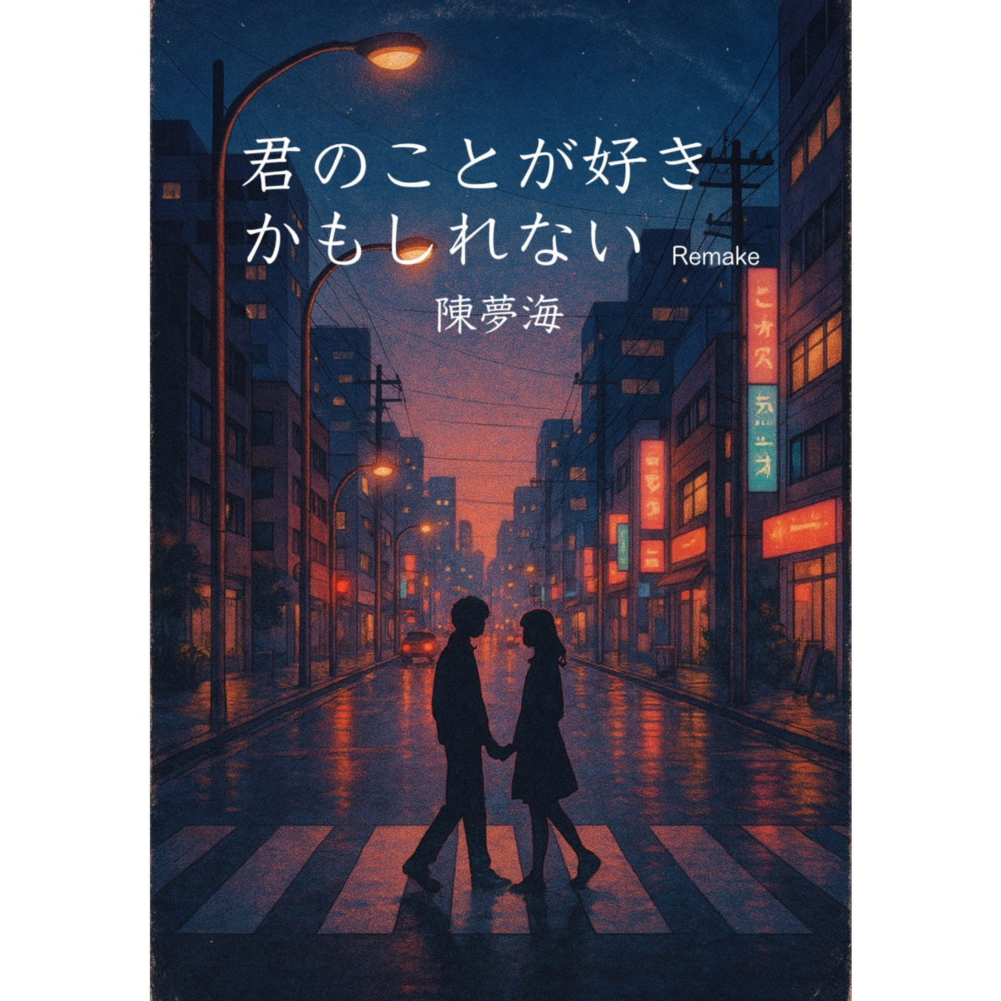 Japanese male ballad remix, dreamy city-night vibe, soft lo-fi beats, warm analog synths, airy pads, shimmering guitar textures, emotional yet hopeful, nostalgic and cinematic atmosphere
