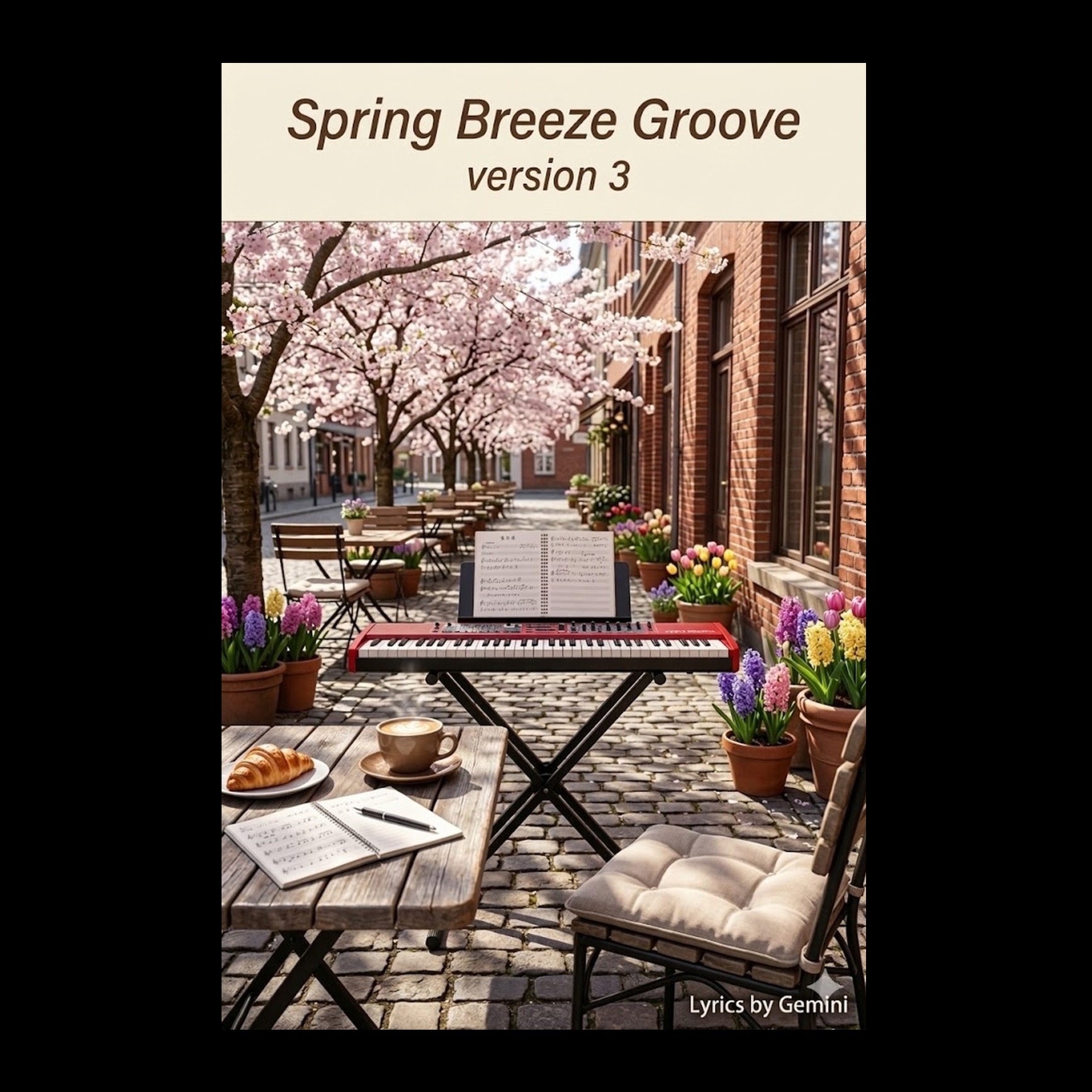 male vocal, upbeat smooth jazz pop, fusion, overdriven lead guitar, warm synthesizer, bright, hopeful, spring vibe, 16-beat shuffle, BPM 110