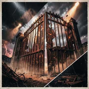 and raw with heavy hip-hop beats and aggressive guitar riffs blending into eerie choral harmonies, gritty, dark