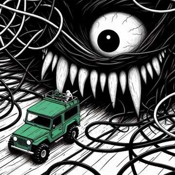 Progressive Metal, EDM, horror, guitar riff, synthwave, dark, hard, Glam metal