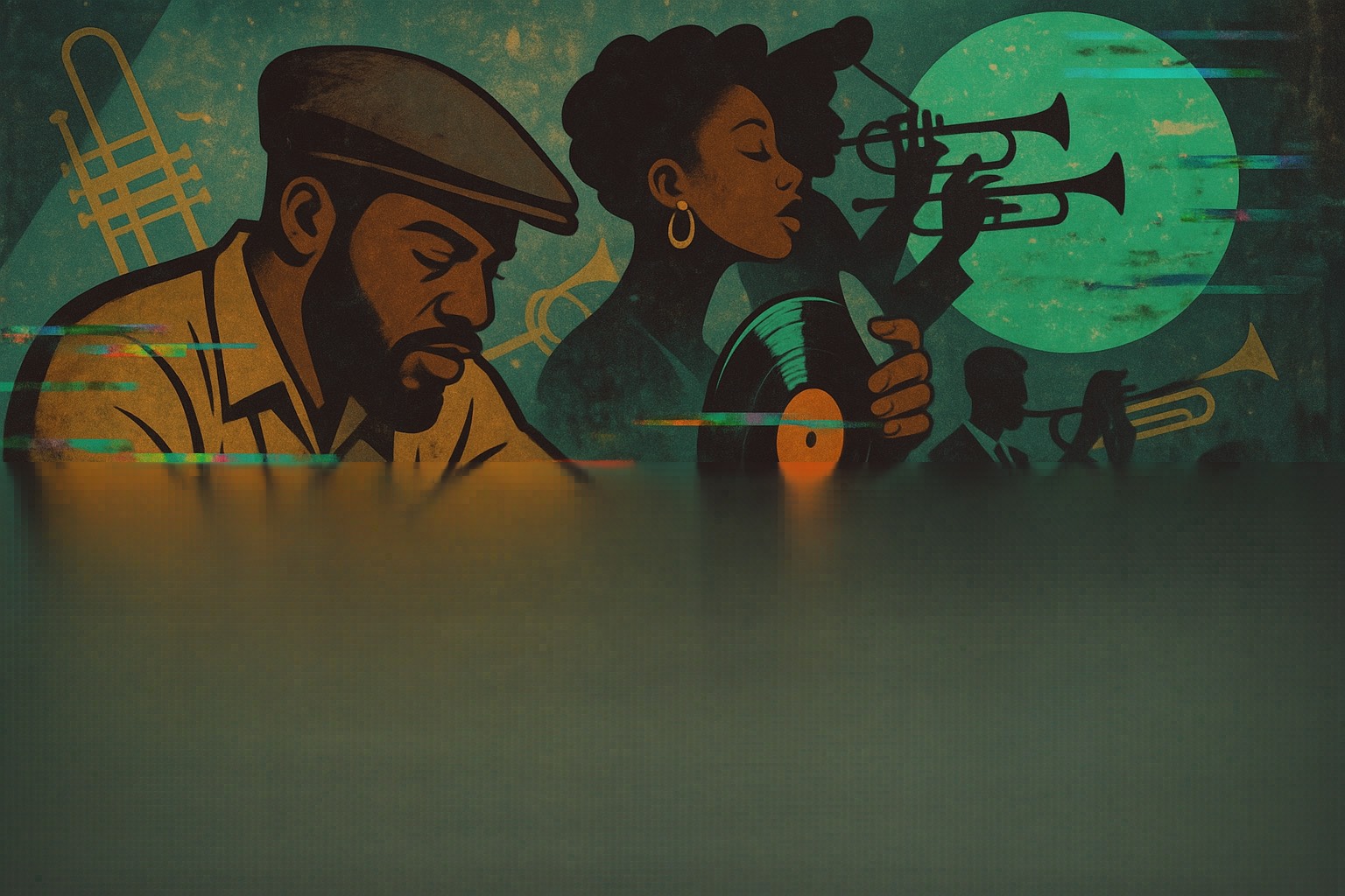 Apocalyptic, glitchart loops, weird avant-garde, Funky, Moroccan Microtonal Melodies with Glissando, Hq Vocal-Forward Master, Radio Edit, Peculiar Warm Raspy Deep Sexy Smoky Baritone Male Voice, Upbeat Swing Jazz, Folk, Bass, Brushed Drums, Saxophone And Trumpet, Bittersweet, Late Night, Gentle Quiver With Traces Of Joy And Regret, Lingering Wisdom