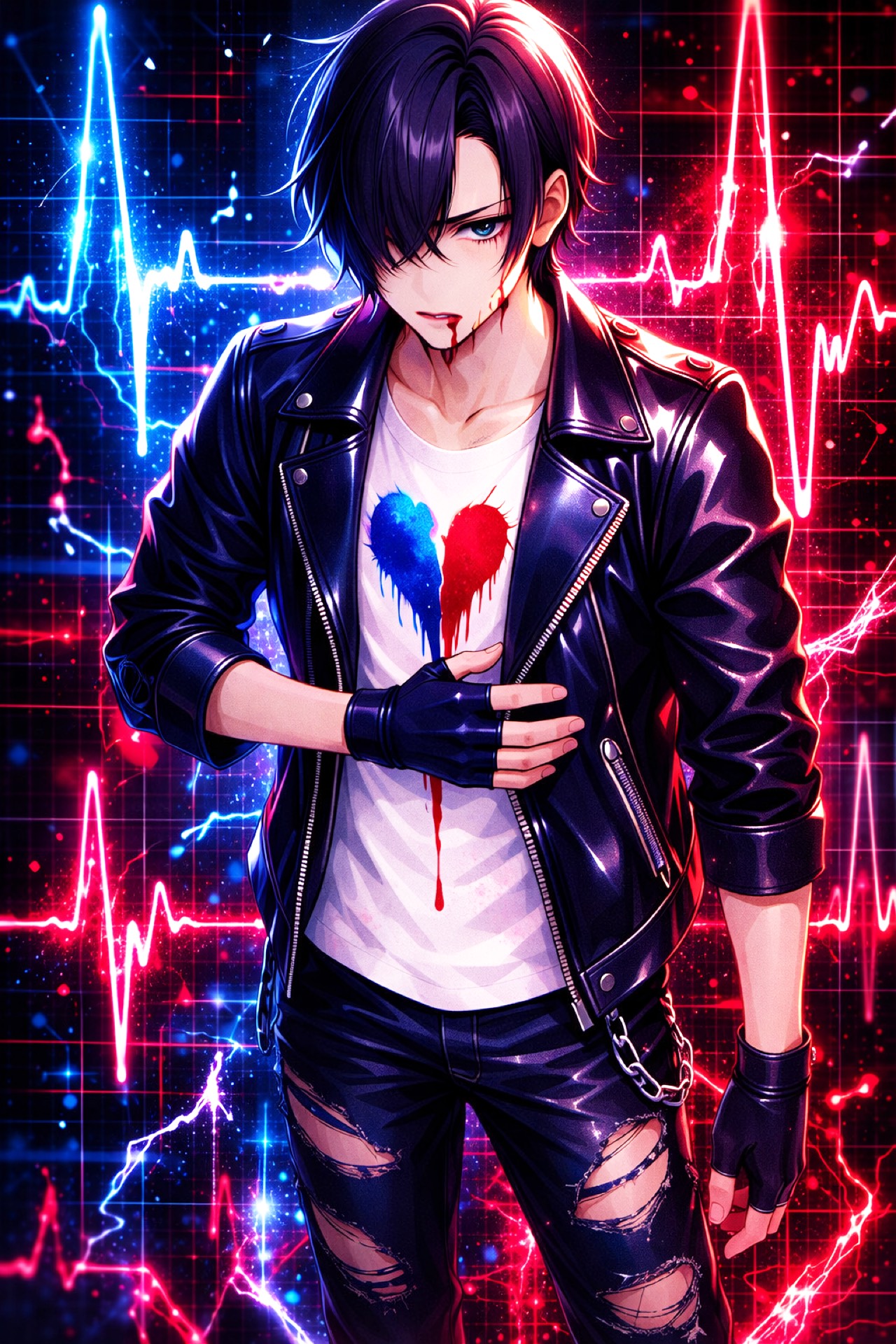 Create a fast modern cinematic track at 150 bpm featuring extremely high-pitched, piercing male vocals upfront, ethereal, delicate, expressive with breathy textures, subtle growls, and natural vocal nuances, Lush evolving synth layers, pulsating electronic textures, glitchy granular effects, and booming sub bass with impactful low hits, Urban nights, rainy neon streets, crumbling ruins, swirling fog and shadows, Chaotic winds, flickering lights, burning skies, Quick transitions, relentless momentum, immersive futuristic sound design, layered male harmonies, robotic vocal processing, multidimensional textures, Sharp electric guitar riffs subtly layered for tension, cinematic energy, dark beauty, melancholy, jealousy, anger, love, destiny, rebirth, Aggressive yet precise dynamics, tactile sonic detail emphasizing every breath and vocal nuance, high energy, modern and intense futuristic sound