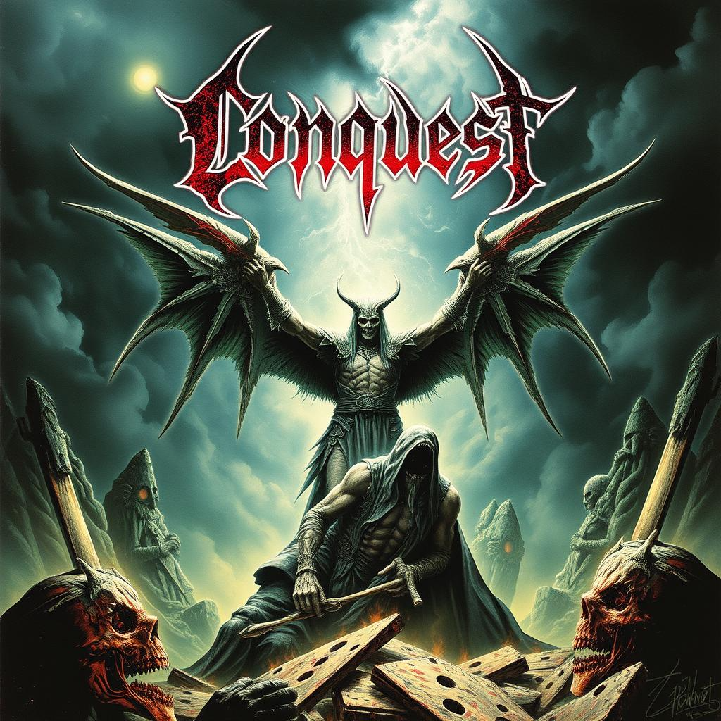Old School 1990's Technical Slamming Brutal Death Metal, Starts with razor-sharp, rapid-fire tremolo guitar riffs and aggressive blast beat drumming, punctuated by slamming, palm-muted breakdowns, The bass is punchy and guttural, often following the guitars closely, Vocals are guttural, Guttural Slamming Brutal Death Metal, Guttural voice and Deep Gore growl vocals, Sludge, Ambient, Reverb, Raw, Powerful, Heavy, Unrelenting, Slow, Beatdown, Groovy, Progressive Progression, Bass, Hell, Atmospheric, Evil, 90's, Ambient, Reverb, Horror, Raw, Powerful, Heavy, Agony, Doom, Insanity, Unrelenting, Hyper-Fast, Beatdown, Guttural Vocals, Sinister, ‑Exclude Spoken clean singing vocals