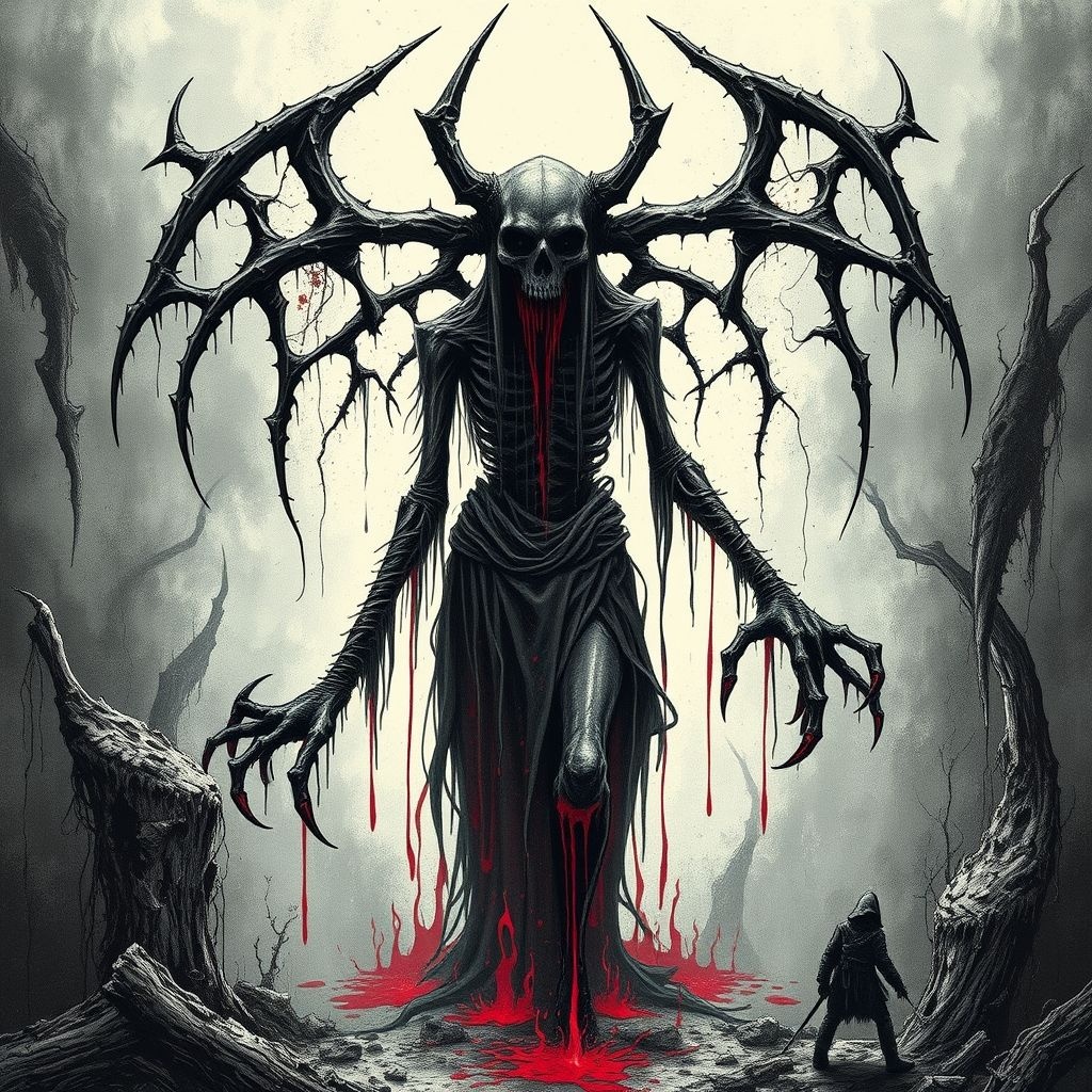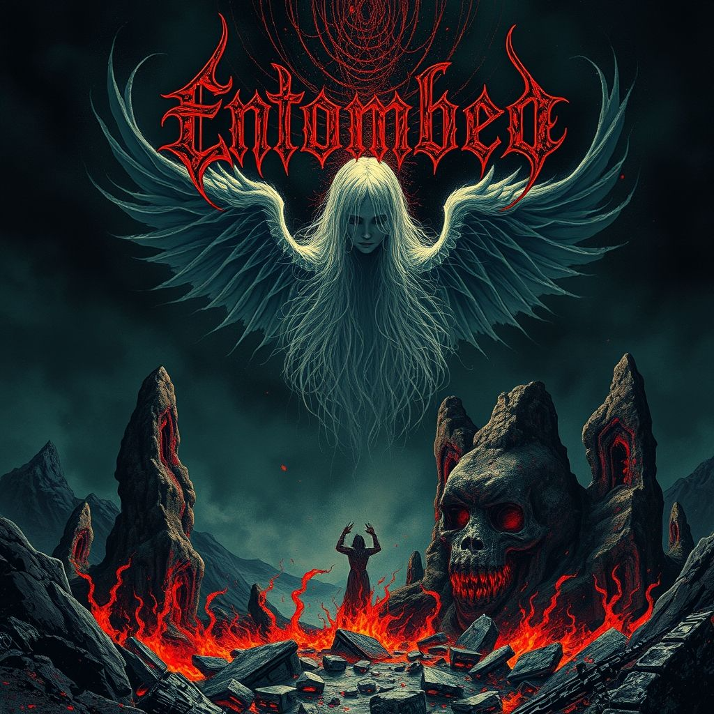 Old School 1990's Technical Slamming Brutal Death Metal, Starts with razor-sharp, rapid-fire tremolo guitar riffs and aggressive blast beat drumming, punctuated by slamming, palm-muted breakdowns, The bass is punchy and guttural, often following the guitars closely, Vocals are guttural, Guttural Slamming Brutal Death Metal, Guttural voice and Deep Gore growl vocals, Sludge, Ambient, Reverb, Raw, Powerful, Heavy, Unrelenting, Slow, Beatdown, Groovy, Progressive Progression, Bass, Hell, Atmospheric, Evil, 90's, Ambient, Reverb, Horror, Raw, Powerful, Heavy, Agony, Doom, Insanity, Unrelenting, Hyper-Fast, Beatdown, Guttural Vocals, Sinister, Guttural Slamming Brutal Death Metal, Gore growls and Guttural voice, Brutal Heavy Slow Sludge Powerful Ambient And groovy