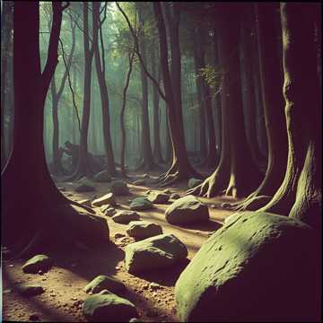 layered, polyrhythmic, auto-panning, evolving, surprising, cathedral reverb, organic, nature, horror sound fx, glitchcore, stuttercore, evolving, prehistoric, dark folk, shaman ritual, foot stomping, d&b, witch house