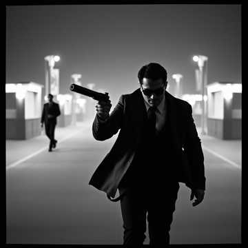 dark synthwave, neo-noir electronic, cinematic orchestral, pulsating bass, gritty industrial beats, melancholic saxophone, driving rhythm, suspenseful, mastering