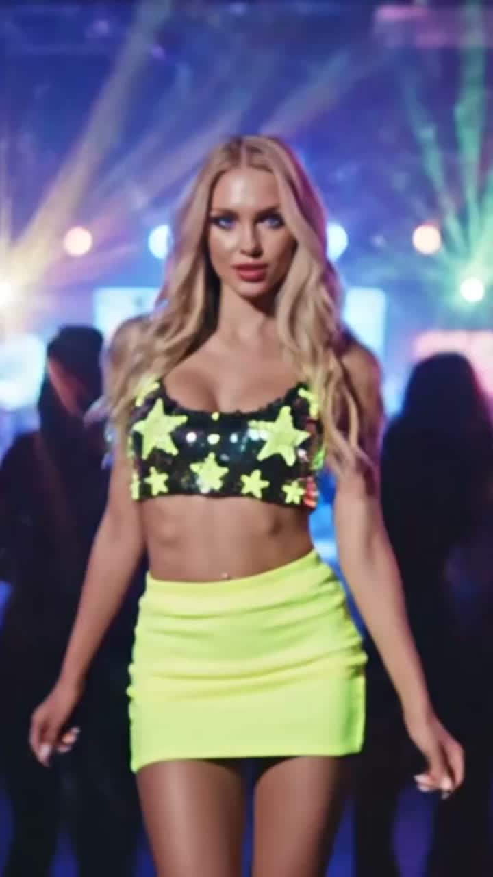 2026 Experimental Neo-Disco Fusion Track, Fast Tempo 140–150 BPM, explosive dancefloor energy, Bold retro-futuristic disco chord stabs with dramatic emotional lifts, Punchy funk-driven bassline layered with sub-synth low end, Radical hyper-digital synth leads, laser arpeggiators, AI-granular texture pads, Wild nu-disco rhythm guitar with phaser and rhythmic chops, Modern club drums fused with disco live drum groove, heavy open hi-hat drive, Stylish female or androgynous vocal with attitude, Festival-dominant, ultra-gloss mix, wide stereo, disruptive next-generation global disco sound