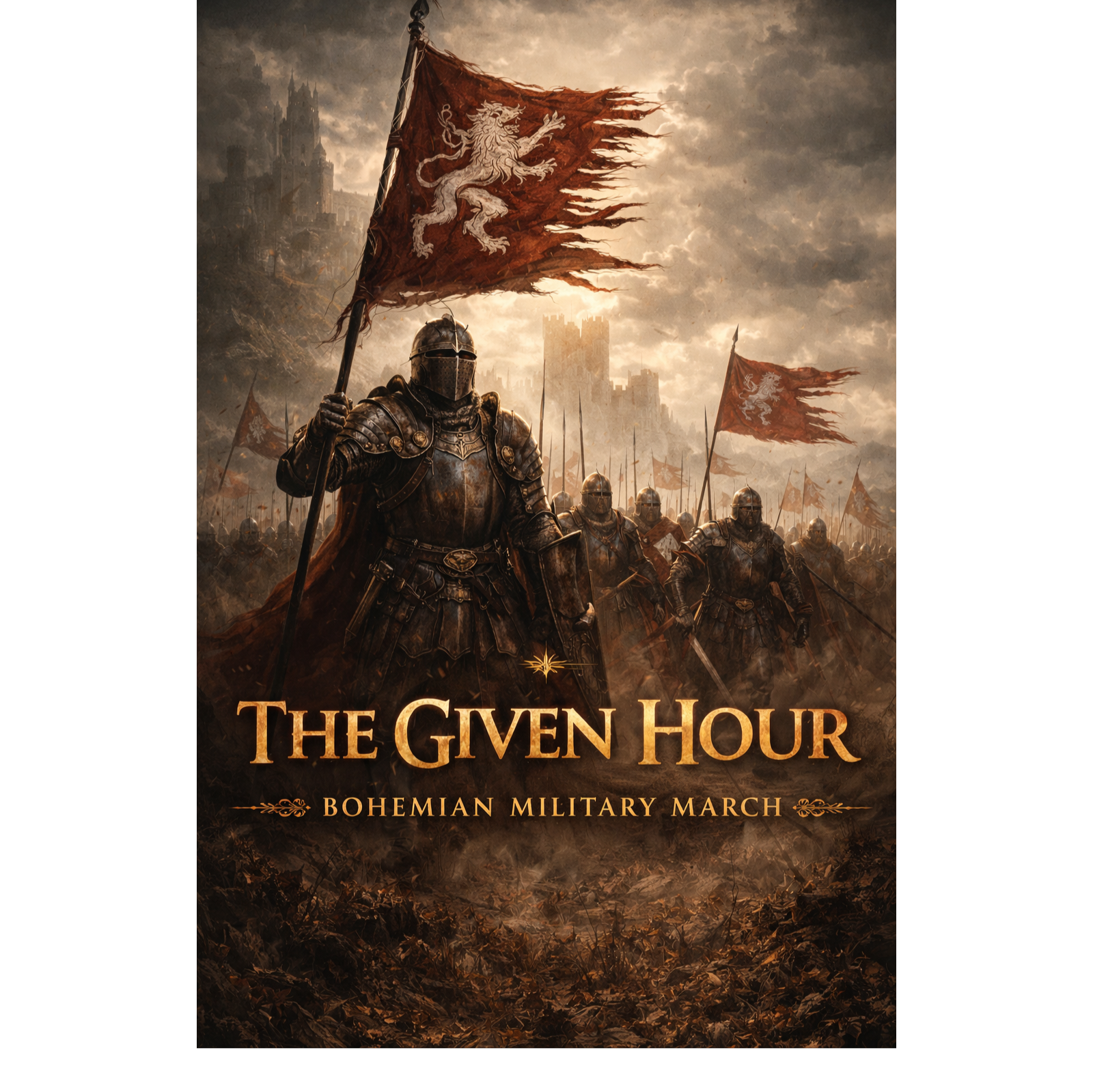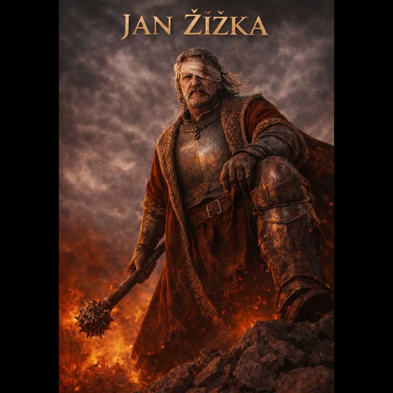 Medieval battle march, grand Hussite war anthem, heavy war drums, deep male choir, aggressive but controlled rhythm, battlefield tension, iron and fire atmosphere, cunning commander energy, righteous fury, strategic warlord presence, dark medieval realism, no modern production, no cinematic trailer style, no electronic sound