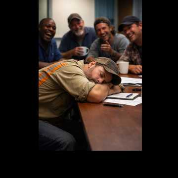 Upbeat 90s-style country with a storytelling focus, acoustic-driven verses, warm electric guitar fills, walking bass, steady drums, friendly barroom energy, conversational male vocal with humor and heart, big singalong chorus, bittersweet tone balancing comedy and resignation, Relaxed country vocal with a conversational delivery, slightly talk-sung in verses and fuller in the chorus, warm and approachable tone, subtle humor and self-awareness, sounds like a seasoned working-class narrator telling a story over drinks