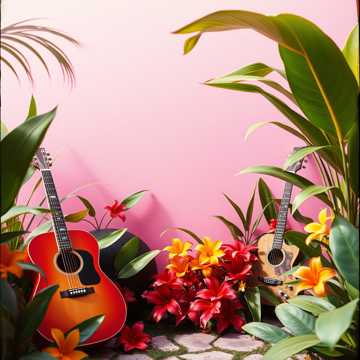 clear resonant jazz-like imorovisational vocals, Ballad, Klezmer, acoustic guitar, syncopated, deep bass, whimsical, theatrical, artistic, melodious, lush exotic tropical background, celebratory