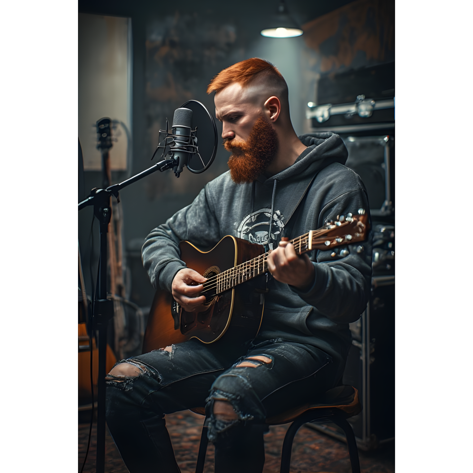 Raw Studio Recording, Acoustic Guitar, Slow, Restrained Lazy and Detached Raspy Male Vocals with Sadness and Pain in his voice, Authentic Live Recording