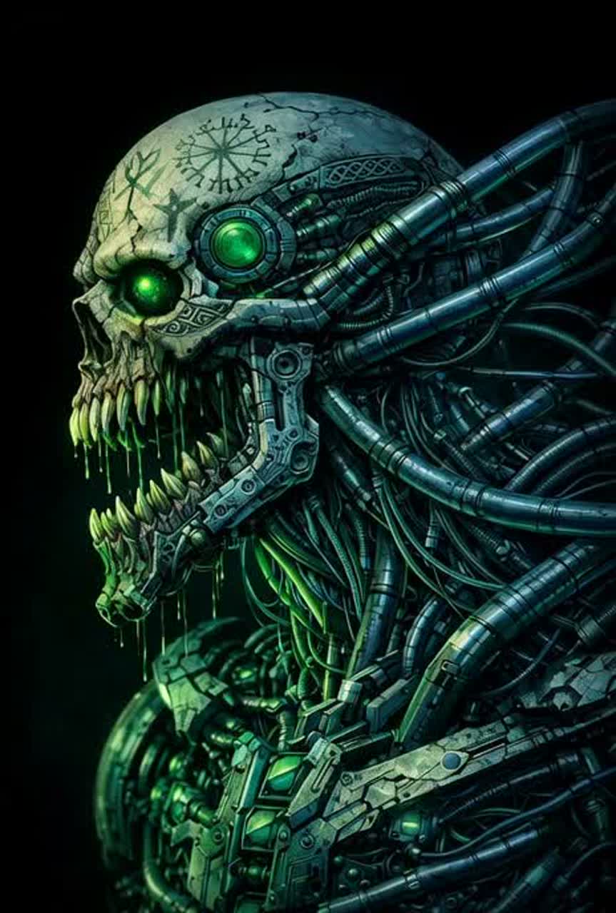 High-Energy fusion of Heavy Industrial Rock and Electronic Dance Music featuring a Gritty, Distorted Male Vocal Performance, The track opens with a cinematic, atmospheric synth pad and spoken word narration before transitioning into a heavy, syncopated industrial beat, The instrumentation consists of aggressive, overdriven electric guitar riffs, a deep, pulsating synth bassline, and a hard-hitting electronic drum kit with metallic percussion accents, The song structure follows a build-up from a moody, mid-tempo verse into a high-intensity, fast-paced chorus with glitchy repetitive overlapped vocals, The key is in a dark minor tonality with a tempo that shifts from approximately 90 BPM in the intro to 160 BPM during the climactic sections