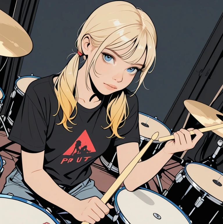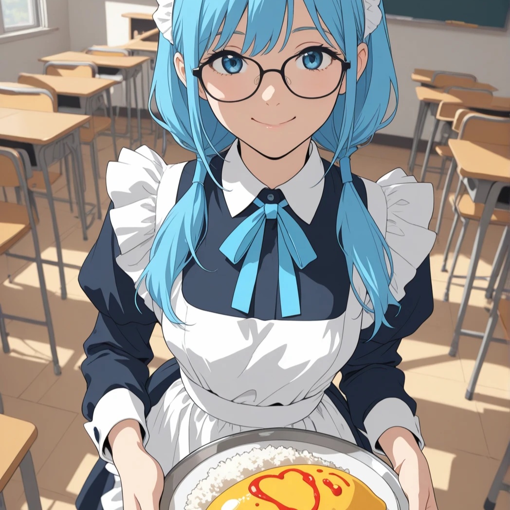 A cute and upbeat J-Pop song performed by a high school girls band, themed around a school festival maid café, The shy girl sings about wearing a maid outfit and serving omelet rice with a heart drawn