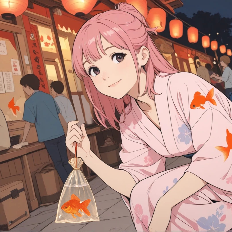 Create a joyful Japanese pop song with traditional instruments like shamisen and taiko, mixed with acoustic guitar and cheerful female vocals, Theme: a fun summer festival night with yukata, fireworks, and a hint of young love