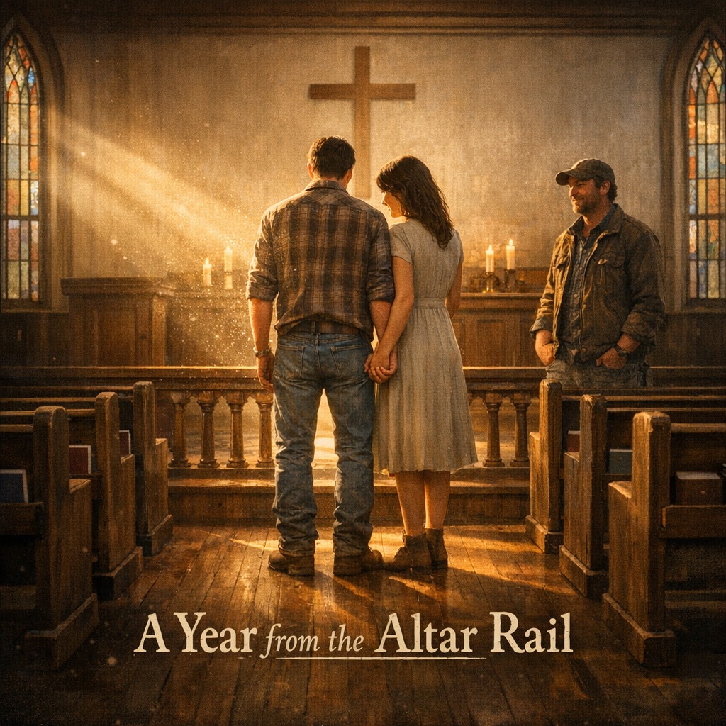 A modern country rock song with strong gospel-church influence at 86 BPM in G minor, built in the same emotional world as a southern redemption ballad told from the outside looking in, Warm acoustic strumming, soft overdriven electric guitars, sparse slide accents, and a steady country-rock rhythm section create a grounded, road-worn foundation, Hammond-style organ and gospel piano gradually rise through the arrangement, while a restrained gospel choir supports the choruses with low hums, light call-and-response warmth, and a fuller final lift, The male lead vocal stays calm, observant, and intimate in the verses, then opens into a fuller chorus without losing its quiet compassion, The bridge leans into church-born emotional gravity before the final chorus expands into the song’s clearest moment of shared witness and fragile hope, Production emphasizes warm low-mids, dry punchy drums, organic band feel, and dynamic growth, avoiding polished pop-country gloss in favor of honest spiritua