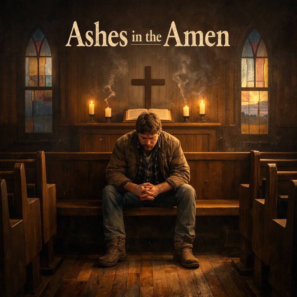 A modern country rock song with strong gospel-church influence at 92 BPM in G minor, built around steady acoustic strumming, warm overdriven electric guitars, Hammond-style organ, and a soulful gospel choir, The verses remain intimate and burdened, led by a gritty male vocal with a weathered, emotionally strained tone, Piano and organ swell in the pre-chorus to create spiritual tension before the chorus opens into a full-band lift with gospel call-and-response vocals, The arrangement balances outlaw-country grit with church-born emotional weight, using slide guitar accents, deep bass pulse, dry punchy drums, and layered choir harmonies to build a sense of struggle and redemption, The bridge leans hardest into the gospel atmosphere with altar-rail imagery, piano, organ, and restrained choir support before the final chorus reaches the song’s biggest emotional release, The production stays warm, organic, and dynamic, avoiding polished pop-country gloss