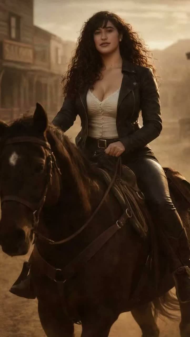 High-energy cinematic outlaw Americana with primal roots and modern drive, Deep didgeridoo pulse and low analog drone open the track, joined by fast acoustic runs, electric high-chord stabs, and pogo-beat drums with heavy swing, Verses ride a relentless groove with rasped bass-baritone male lead, Texas-accented phrasing, dusty harmonica, and roaring Hammond organ, Choruses explode into intertwining electric and acoustic guitars, steel slide accents, swingy piano, mandolin flourishes, and a resonant male bass choir, creating a massive, anthemic lift, Frequent beat drops, half-time switches, and stuttered rhythmic hits add unpredictability, Instrumental breaks feature pan flute and didgeridoo interplay, banjo-fiddle call-and-response, and cinematic FX (breath, stomp, distant howls), Female background vocals act as confident observer and knowing presence, playful, amused, and untouchable, Overall mood: dangerous confidence, undeniable allure, mythic feminine power, wild but joyful, bold a