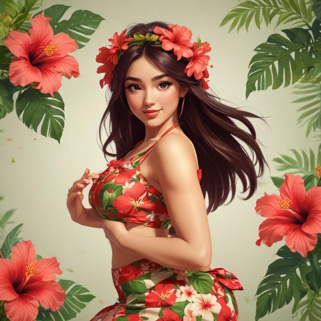 A sparkling and cheerful J-POP idol song blended with the bright sounds of ukulele and steel guitar from Hawaiian hula music, The song has a refreshing tropical beach and blue sky vibe, The chorus is catchy and danceable, creating a cute and summer-like feeling, ---