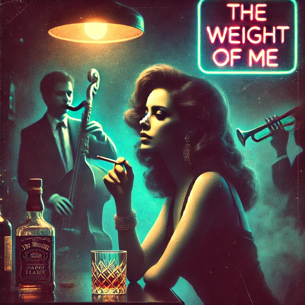 Husky, sultry female vocals, raw emotion, Cinematic, haunting film-noir jazz ballad, Slow, sensual jazz with smoky bar blues, Muted trumpet, brushed drums, upright bass, sorrowful piano, late-night co