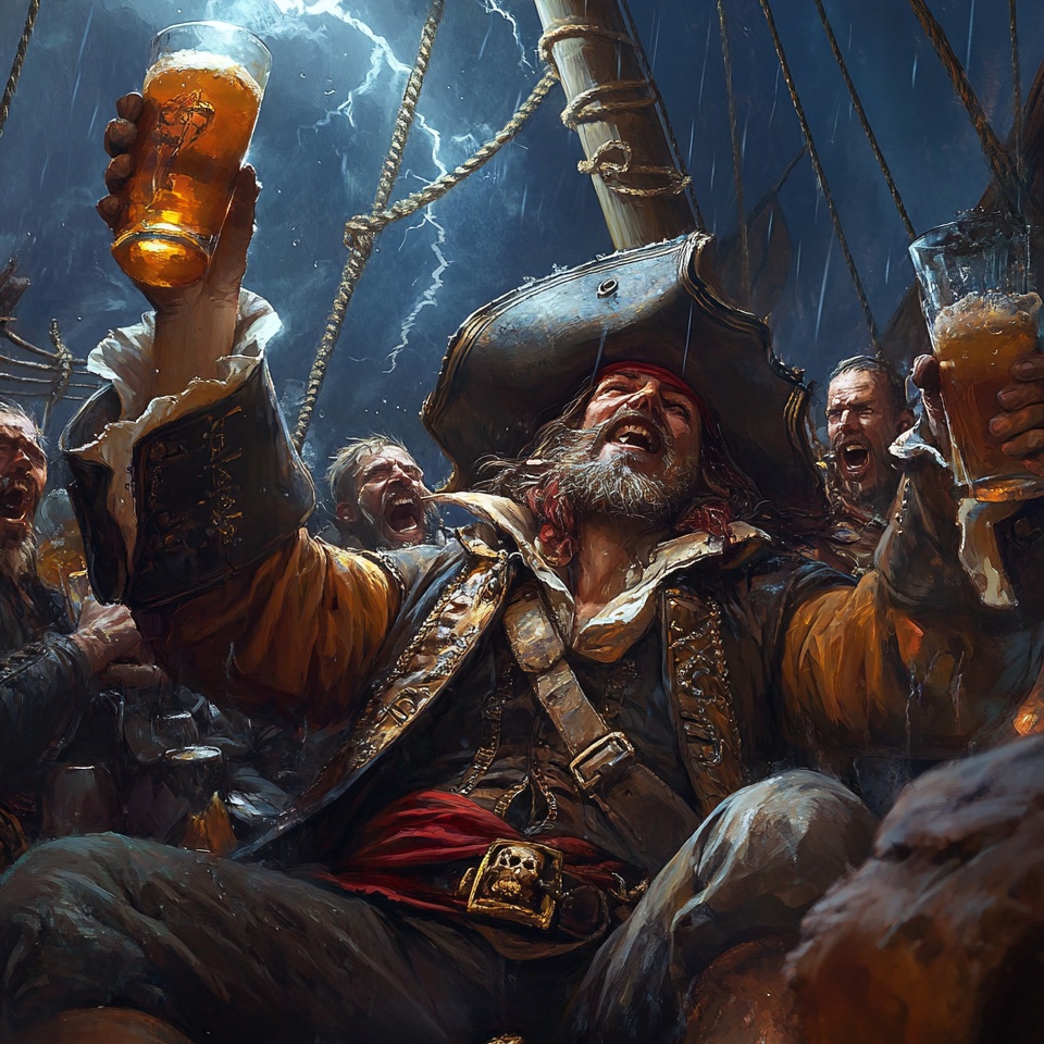 synthwave, low tension long intro, 100 BPM, sound sample of rigging and creaking of a wooden ship