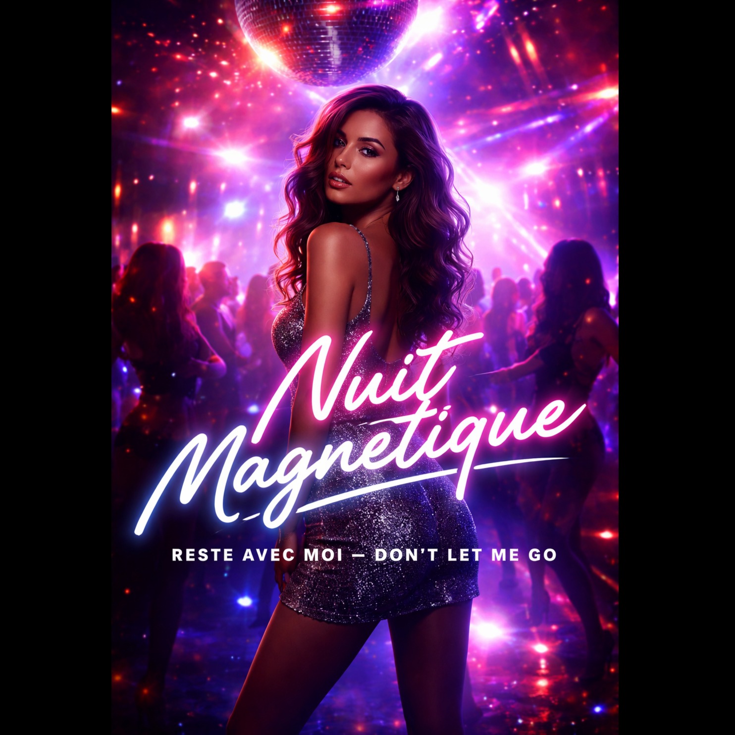 French house, nu-disco, modern dancefloor energy, 122 BPM, deep groovy bassline, punchy four-on-the-floor kick, filtered disco chords, shimmering synth layers, tight sidechain compression, crisp hi-hats and claps, subtle funk guitar, lush pads, female French vocal—breathy yet confident, bilingual delivery (French verses, fully blended French + English chorus), hypnotic and sensual club vibe, strong melodic hook, vocal chops in drop, extended DJ-friendly instrumental sections, clean polished mix, late-night Paris club aesthetic, emotional but danceable, radio-ready