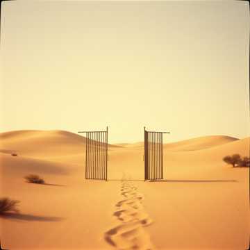 Traditional Gnawa trance rhythms with layered qraqebs, guembri-inspired bass, and desert percussion pulse at 95 BPM, Piercing koto melodies cut aggressively atop, while clashing metal, creaks, wind, and rumbling FX evoke supernatural breakthrough, Fierce, chant-driven echo vocals and dramatic FX-driven stops/surges create bold, triumphant, militant spiritual energy