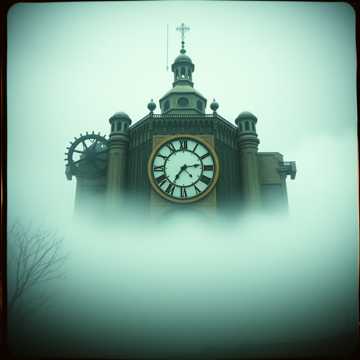 Opens with pipe organ, clock chimes, and metallic gears, creating a steampunk gothic atmosphere, Heavy guitars and industrial percussion thunder beneath soaring cinematic orchestra and haunting choirs, Male baritone leads, with death metal growls woven in; wolves howl in transitions, Ethereal synth and ambience blend for an epic, apocalyptic climax