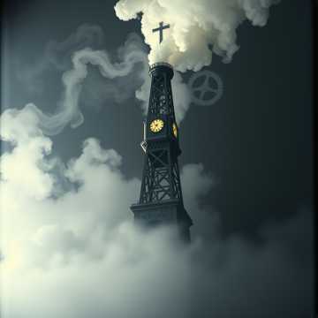 Gothic death metal, dark folk, thundering fast pounding drums, cinematic orchestration, fog, gears, clock chimes, pipe organ, heavy distorted guitars, haunting choirs, industrial percussion, and atmospheric wolf howls, The tone is dark and apocalyptic — Deep baritone male vocals with gothic grandeur and epic orchestral dynamics
