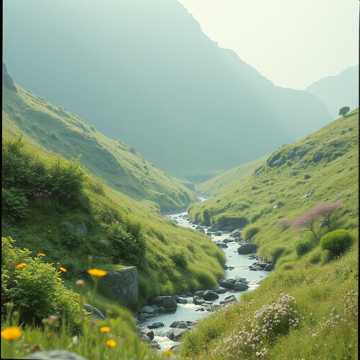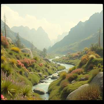 Orchestral folk blend with harp arpeggios and playful flutes open over rustling percussion, Tribal drums and layered female vocals add epic, spirited momentum, Whimsical new age touches weave in, swelling with orchestra to evoke a mythical valley and echoes of a lost civilization, anime, doujin
