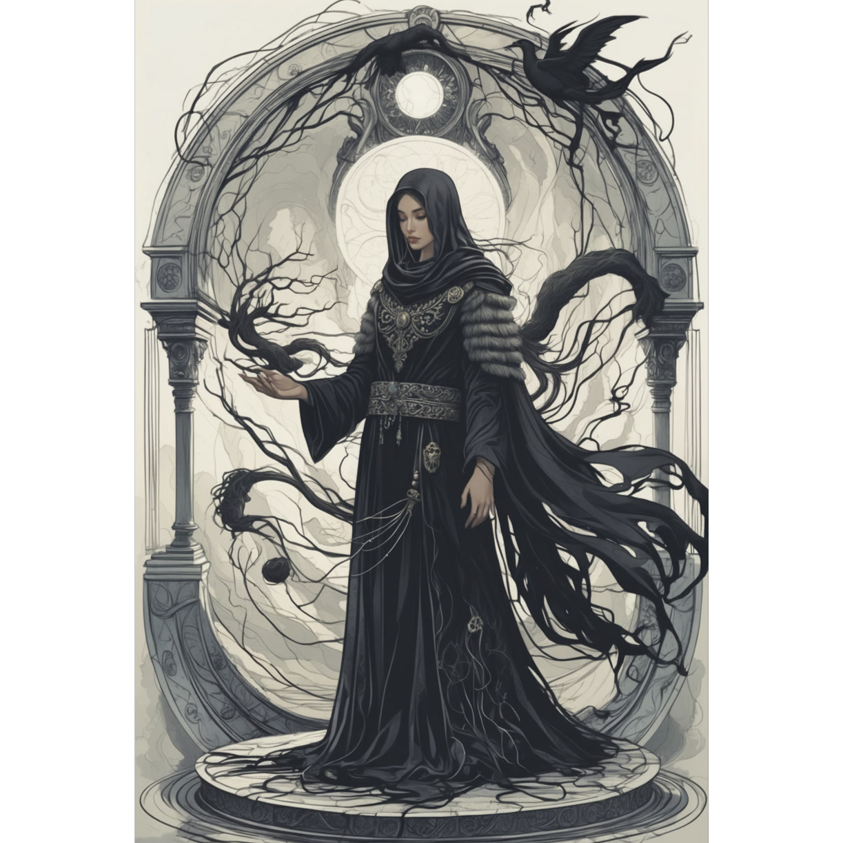 70s Occult Rock, Psychedelic Doom Metal, Acid Folk, Retro Analog Production, Female Vocals, Farfisa Organ, Hammond Swells, Fuzzy Heavy 70's style Riffs, Groovy Basslines, Dark Progressive, 1971 Vintage Vibe, witchy, pagan, 60s Saturnalia, surreal, reverberated, Vocals: Female Lead], Commanding Contralto, Rapid Vibrato, Declamatory, Middle Eastern Melisma, Psychedelic Rock, Hypnotic Bolero, Cavernous Reverb, 1960s Acid Rock