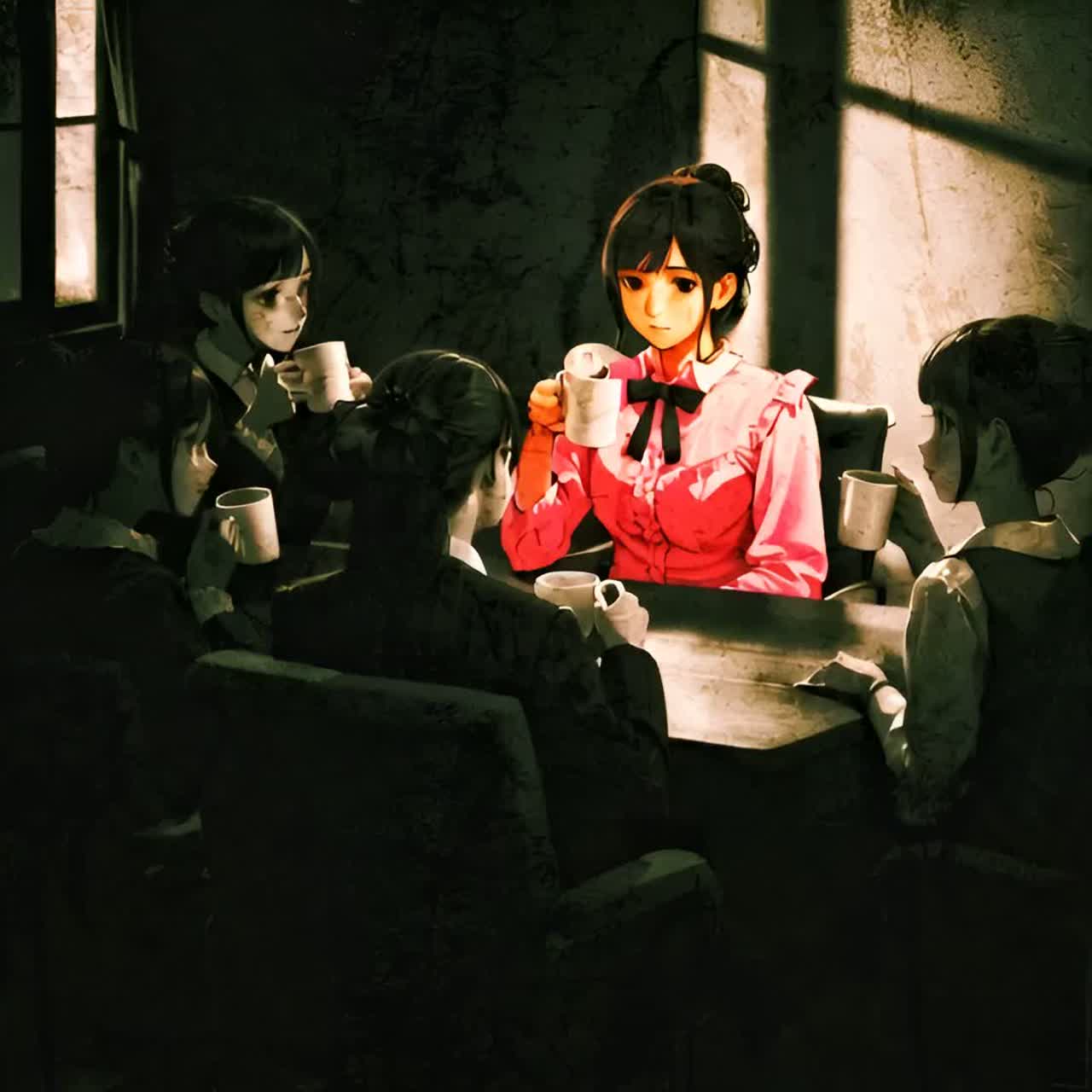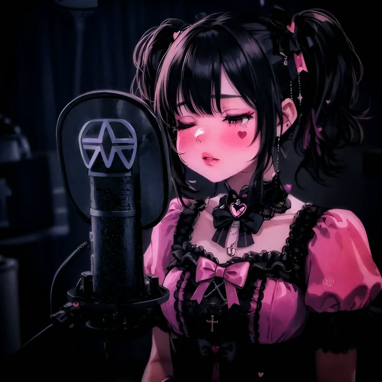 kawaii Girl shouts, gasps, and sighs—percussive breaths used as rhythmic hits, texture cues & Relentless avant-garde jazz piano rules, Frantic high-register clusters, jagged dissonant stabs, and aggressive hammering cut through every section, interrupting and destabilizing the pulse, Below, an industrial garage-grit groove-metal engine drives ethnic-scale distorted riffs, Drums: fast-tempo doom momentum with relentless kick, snare, tom bursts, Guitars: towering shoegaze roar—feedback veils, bending drones, side-guitars panned ultrawide, long sustain, shimmer smear, Glitch-cut transitions, tape hiss, No verse/chorus; form follows the piano's insurgent logic—tense, fractured, merciless, Mix: Piano upfront with fast-attack/medium-release comp, transient bite, light tape sat, Guitars as wide shoegaze sheets via M/S; mono below 120 Hz, Drums: parallel crush, clipped kick, plate snare, room, Glitch via hard mutes, Master: tight subs, gentle air, multiband glue, TP-1dB, -11LUFS, dither