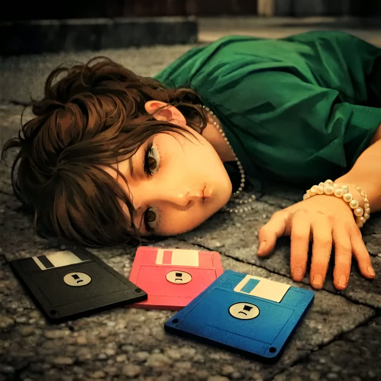 Authentic Japanese PC-98 hand mixture EDM game-music, programmed with PMD on the YM2608 (OPNA) chip of the PC-9801-86 board, FM chip synthesis dominates: metallic, aliasing-rich FM leads, electric piano chords, deep FM bass, dry, flat, Three SSG channels provide crisp 16th-note arpeggios with variable duty cycles, PCM rhythm channels deliver short, sharp kick, snare, hi-hat, and cymbal hits, tight and percussive, Whisper girl Vocal use a single ADPCM channel, With a very low sampling rate, they are heavily clipped, distorted, and digitally cracked, They pierce through the mix as a rough intrusion, Mixing and mastering were done using line-out quality from PC-9801-86 hardware, without reverb, spatial effects, or MIDI, Inspired by Ryu Umemoto: melancholic minor-key harmonies, jazzy dissonance, suspended chords, unresolved cadences, and chromatic lines, Minimalistic repetition builds intensity, with crisp percussion, bittersweet FM leads evoking a late-night, haunting PC-98 atmosphere