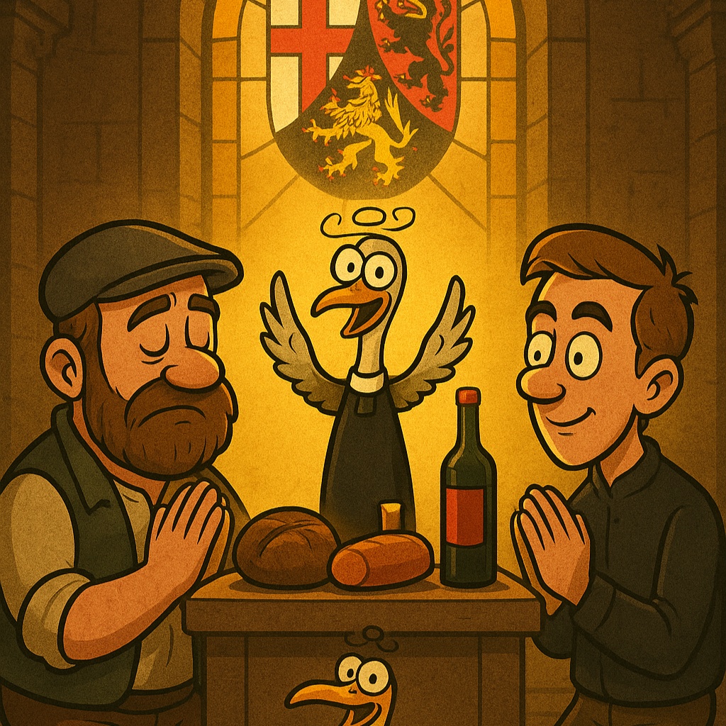 Acoustic guitar and accordion open with a lilting folk motif at an andante tempo, joined by steady bass and light hand percussion for pulse, A clear german male tenor sings solo with no choir, supported by subtle orchestral strings, The chorus expands with brass and full symphonic textures, ebbing in dynamic waves