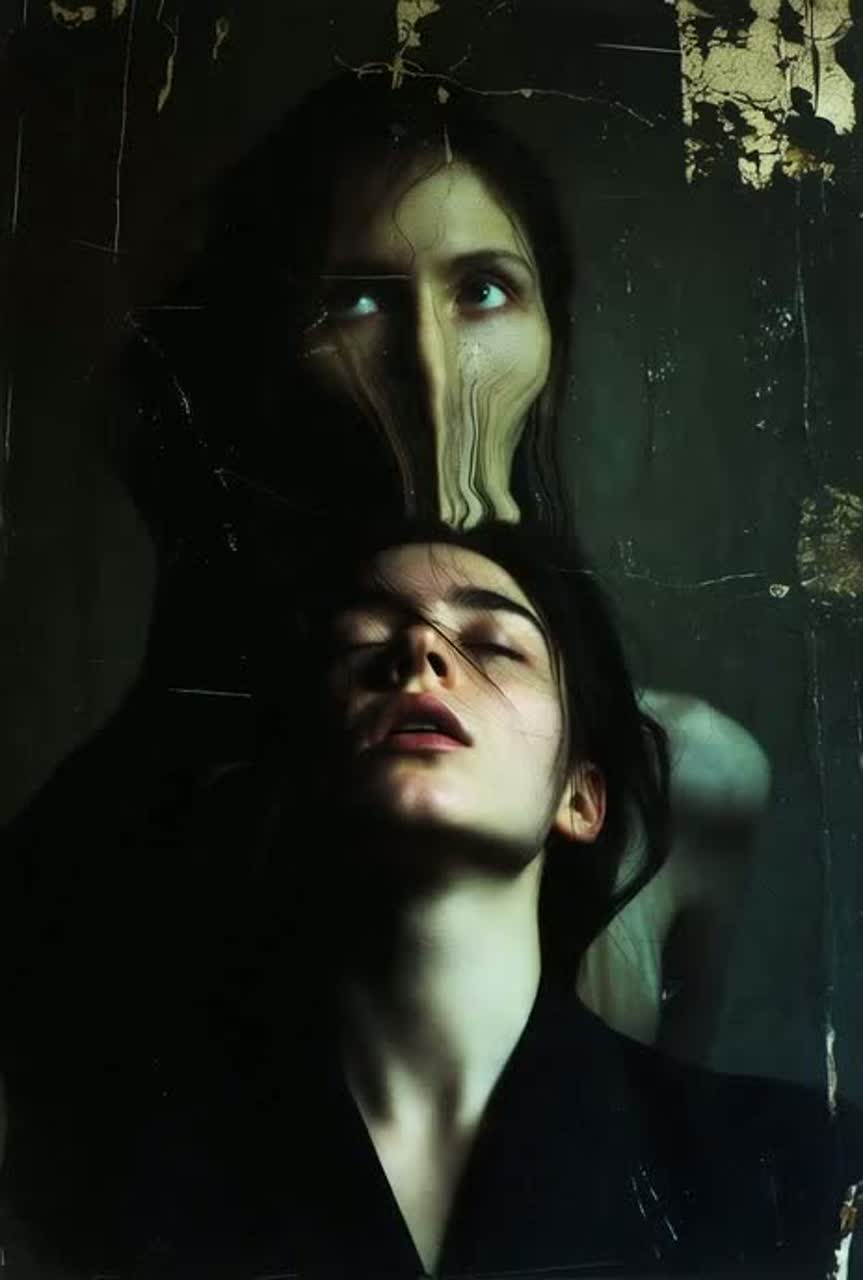 trippy, ethereal, hypnotic atmosphere, space percussion, gritty vocals, layered with shimmering synth pads, echoing chimes and deep pulsating bass, binaural tone