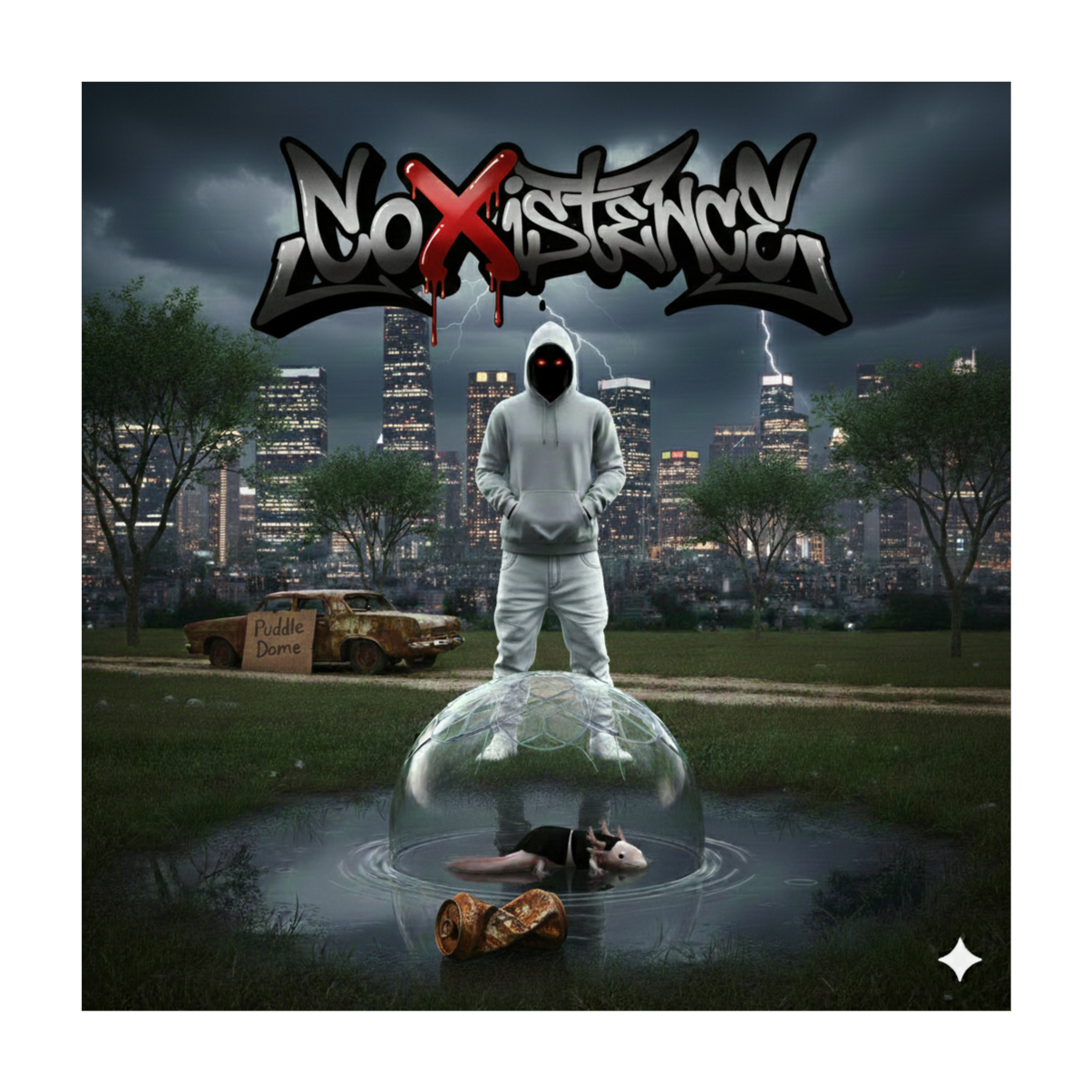 This track fuses industrial phonk beats with distorted 808s, aggressive vinyl chops, and eerie horror samples, The verses layer guttural, monotone harsh male vocals against industrial textures and haunting metallic percussion, choruses feature a children’s choir processed with heavy reverb, amplifying the terror, Extra energy from grinding deathmetal guitars and panic-inducing synths heightens the chaotic, nightmarish atmosphere