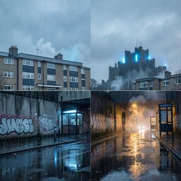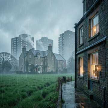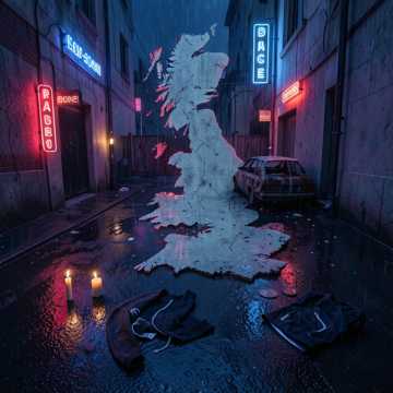 rap, Gritty UK drill-leaning rap with shifting regional inflections; minimal eerie keys and sliding bass under tight, punchy drums, Verses start sparse to spotlight the storytelling, then gradually add distant crowd chants and siren-like pads, Choruses get double-tracked hook vocals, subtle choir stabs, and a rising 808 glide to heighten tension while keeping a dark, street-level feel, Male vocals with occasional pitched-down ad-libs