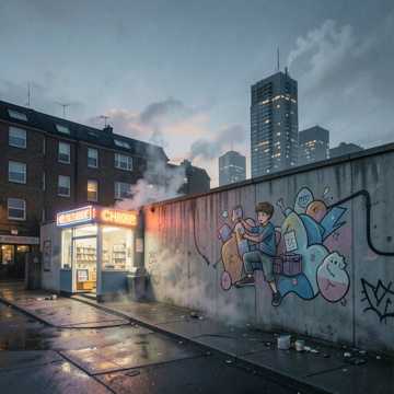 rap, Grimy UK rap cypher vibe, 92 BPM, male vocals with a gritty conversational tone, Sparse detuned keys over subby bass and tight, swung drums; verses stay close and intimate, ad-libs tucked low, Hook widens with stacked vocals, distant siren FX, and a darker pad blooming under the 2nd half, Occasional tape-stop drops between sections for emphasis, overall mix leaning raw and street-focused
