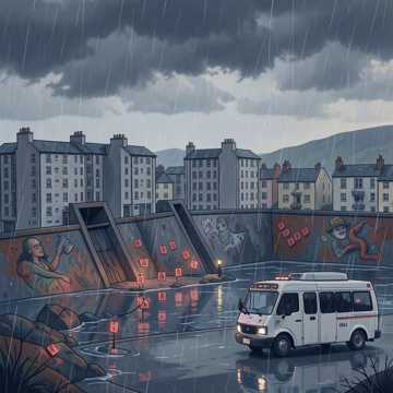 rap, Moody UK drill-infused rap beat, 144 BPM, male vocals with a gritty conversational tone, Dark sliding bass and tight hi-hats, eerie bell loop and low choirs in the hook, Verses stay sparse to spotlight the narrative; choruses stack gang vocals and distant shouts for impact, Occasional tape-stop drops before punchlines, wide reverb on ad-libs to feel like cold night air across the Isles