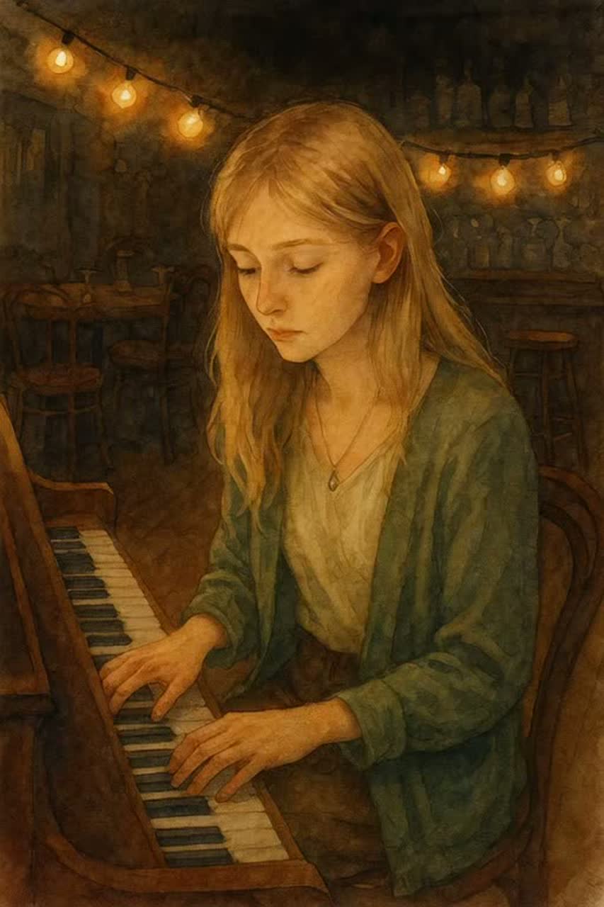 A Blue-Eyed Soul track with smoky, velvet-rich vocals carrying a haunting Scottish lilt, Intimate, behind-the-beat phrasing with ghostly harmonies and a fragile emotional tremble, Piano-led arrangements built on felted upright warmth, incorporating soft gospel-slide grace-notes, subtle major9/add2 colour voicings, and a light half-damper shimmer for late-night jazz-soul depth, Fingerstyle electric bass adds melodic glide, while vintage soul drums provide brushed, low-room textures, Ambient electric guitar offers dry tremolo pulses, with occasional organ swells for spectral warmth, The overall atmosphere is emotional, introspective, and slightly melancholic, painted in warm analog tones with a clean, intimate, timeless mixdown