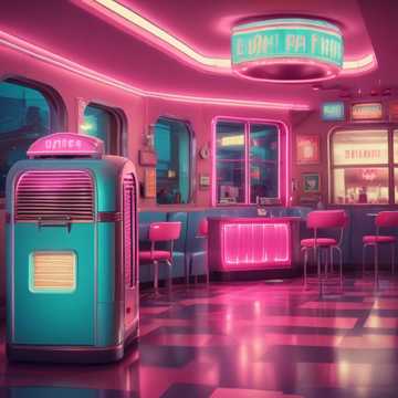 Funky jazz with a retro, diner vibe, Fun, nostalgic, and a bit playful, evoking the atmosphere of a 50s pizzeria, โAvoid slow, โdramatic tones; no orchestral or intense electronic sounds