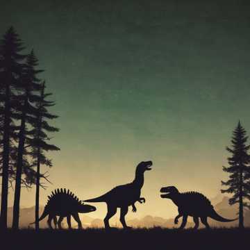 Cinematic with a prehistoric feel, Deep percussion, brass, bass strings, ambient growls, Primeval, dinosaurs, โAvoid light or modern sounds; no electronic or synth elements