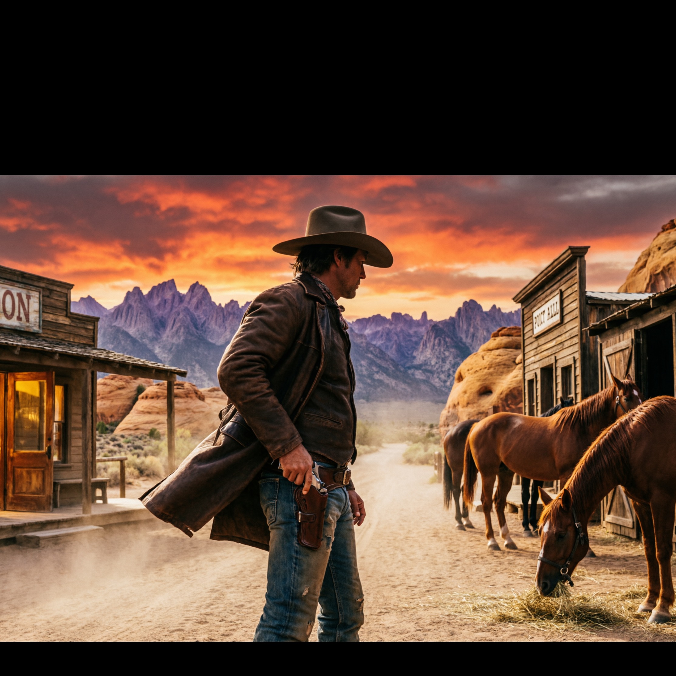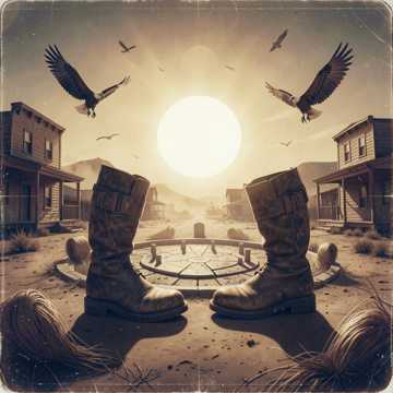 estilo sugerido spaghetti western cinematic Film Score, Classical, Orchestral, Avant-Garde desert rock male vocals gritty atmospheric