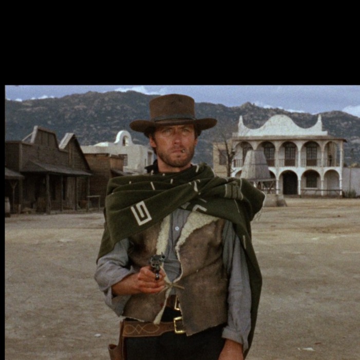 folk, Cinematic 1960s Italian western score, male whistled lead, Dry acoustic guitar and mandolin set the dusty pace, joined by tremolo electric swells, whistling, and harmonica, Orchestra creeps in with strings, tubular bells, timpani, snare, and low brass, building to Morricone-style trumpet fanfares and galloping percussion, Gunshot impacts and horse-hoof rhythms punctuate the final showdown, tension rising and falling in long, spacious waves over an extended, evolving suite, low, orchestral, classical, acoustic, avant-garde, electric, dramatic