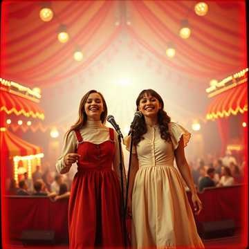 Minimal techno meets circus waltz, with pulsing beats, eerie calliope, and vocal glitches, female ghost vocals