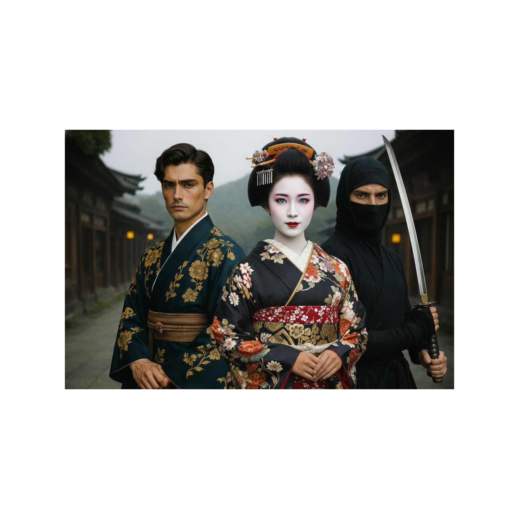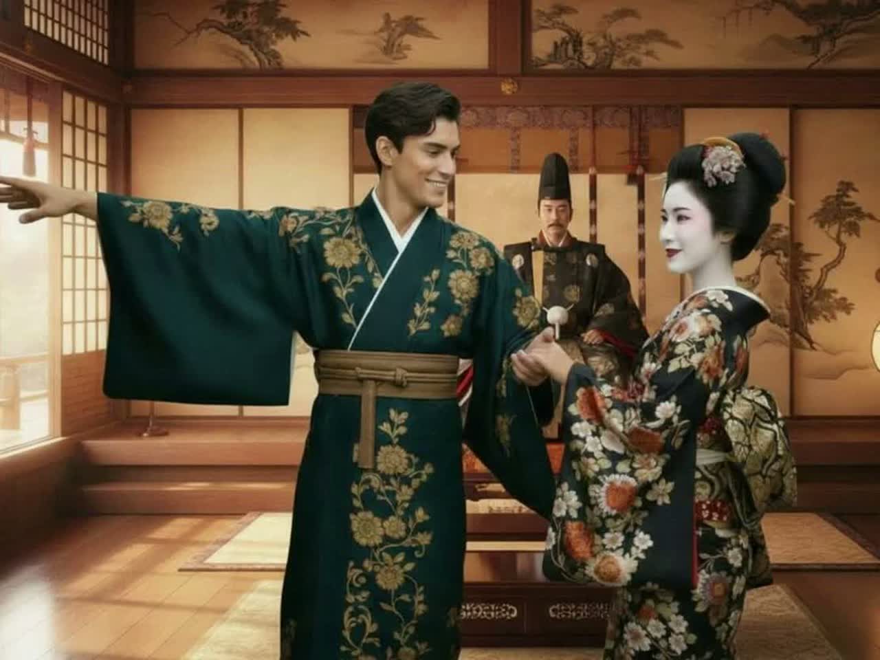 Traditional Japanese Min’yō, Slow Tempo, Romantic, Ethereal, Shamisen, Koto, Shakuhachi, Taiko (soft), Male Vocals, Light Lyric Tenor, Gentle Delivery