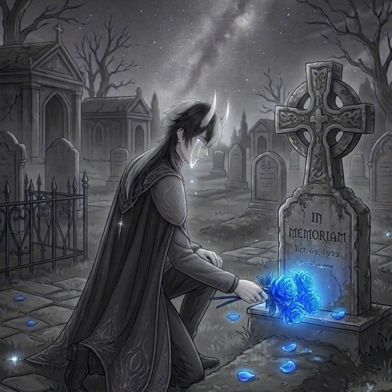 addictive melody, Dark Fantasy Ballad, Gothic Lullaby, Cinematic Orchestral, Slow emotional ballad mixed with lullaby and soft chant, The song should feel intimate and hypnotic, as if the singer is remembering someone he loved while standing alone at night, Slow (about 65–70 BPM), Quiet, sorrowful, and haunting, The music slowly grows but never becomes loud the emotion stays tender and tragic rather than angry, Soft piano, distant strings, light choir pads, faint bell tones, low cello, soft wind ambience, Young male voice, soft and breathy, The voice should sound fragile, emotional, and sincere, Almost like he is singing to someone who cannot hear him anymore, Occasionally the voice cracks slightly with emotion, During the chorus the voice rises but still keeps a gentle sorrowful tone, Lost love, memory, grief, devotion beyond death, loneliness