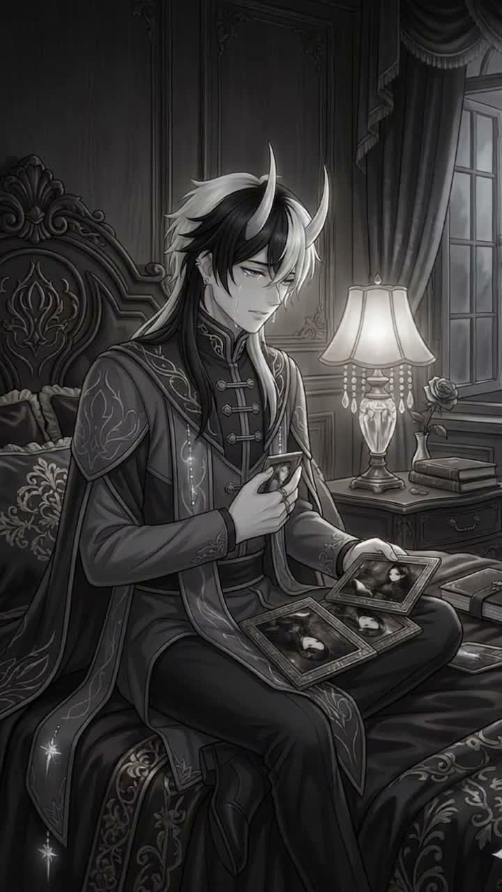 Dark Gothic Lullaby, Ethereal Dark Pop, Slow 65 BPM, Sedative, haunting, romantic, tragic, Soft young male voice, gentle and airy with a slight tremble like he’s holding back tears, His voice should sound intimate and close to the microphone, almost like he’s singing directly into someone’s ear, Light breathiness between phrases, Occasionally the voice dips into a slightly darker demonic undertone during emotional moments but always returns to soft vulnerability, The delivery should feel melancholic, loving, and hypnotic, Slow echoing piano melody