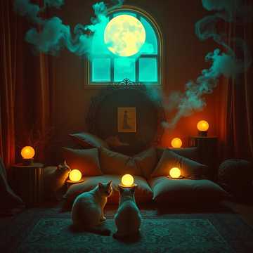 Sound palette: low wind tone or drone, soft branch creaks, occasional owl hoots (distant → closer → distant), subtle wing-whoosh sounds, pauses that feel intentional