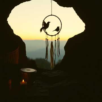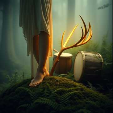 Ambient nature sounds, ritualistic drums, soft flute, shamanic vibe, medicine circle