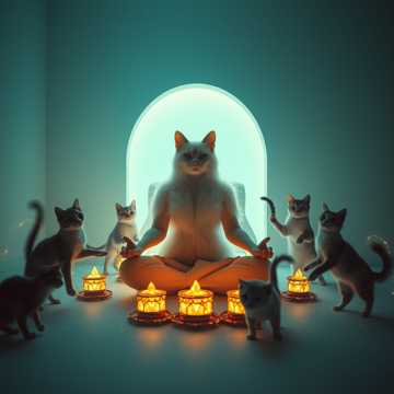 Playful chant-style hip hop, medicine woman energy, tribal drums, bouncy bass, quirky sound effects, light beatboxing, spoken word verses, female vocal lead, layered chants, humorous tone, mystical but fun, cat purrs and soft meows as texture, joyful and unhinged but warm